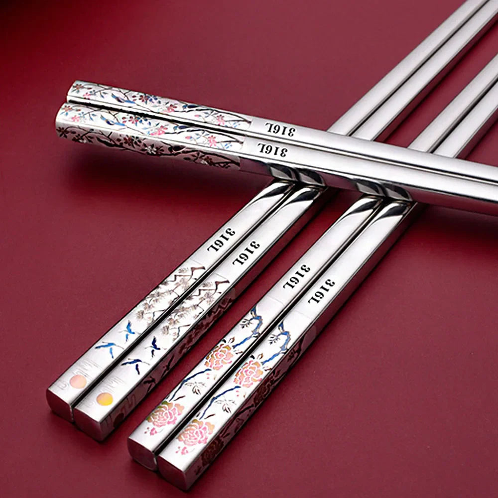 Elevate your dining experience with these beautifully crafted Floral Metal Chopsticks, designed to blend traditional Chinese and Korean aesthetics with modern durability. Made from high-quality 316L stainless steel and finished with a titanium-plated coating, these chopsticks are not only a stunning addition to your table but also resistant to rust, corrosion, and wear.