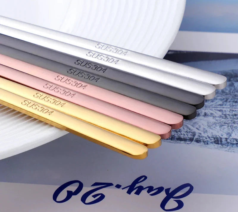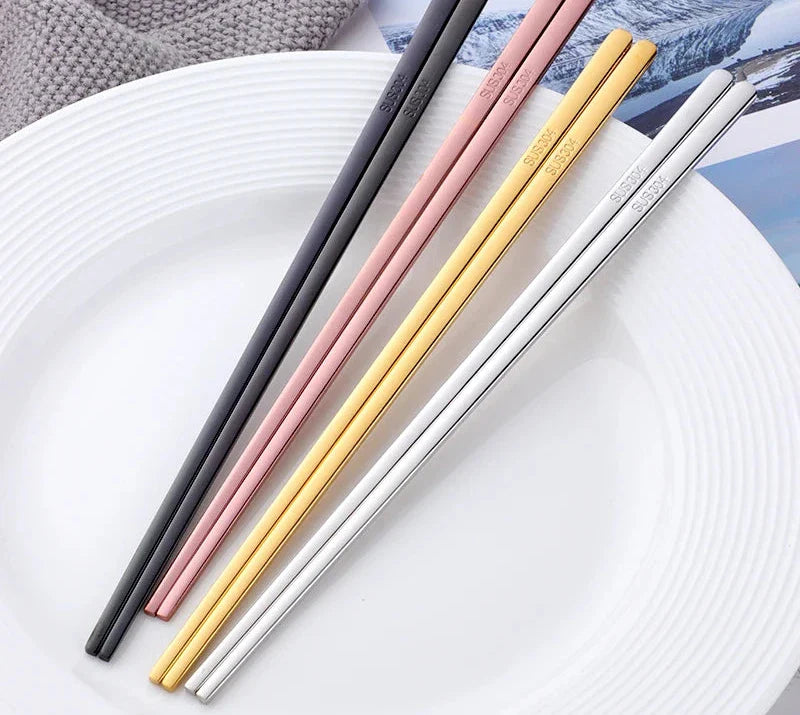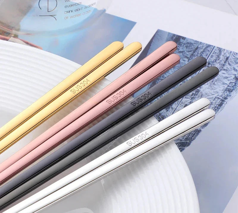Korean Metal Chopsticks | Pink Gold Black Silver Metal Stainless Steel - 1 Pair